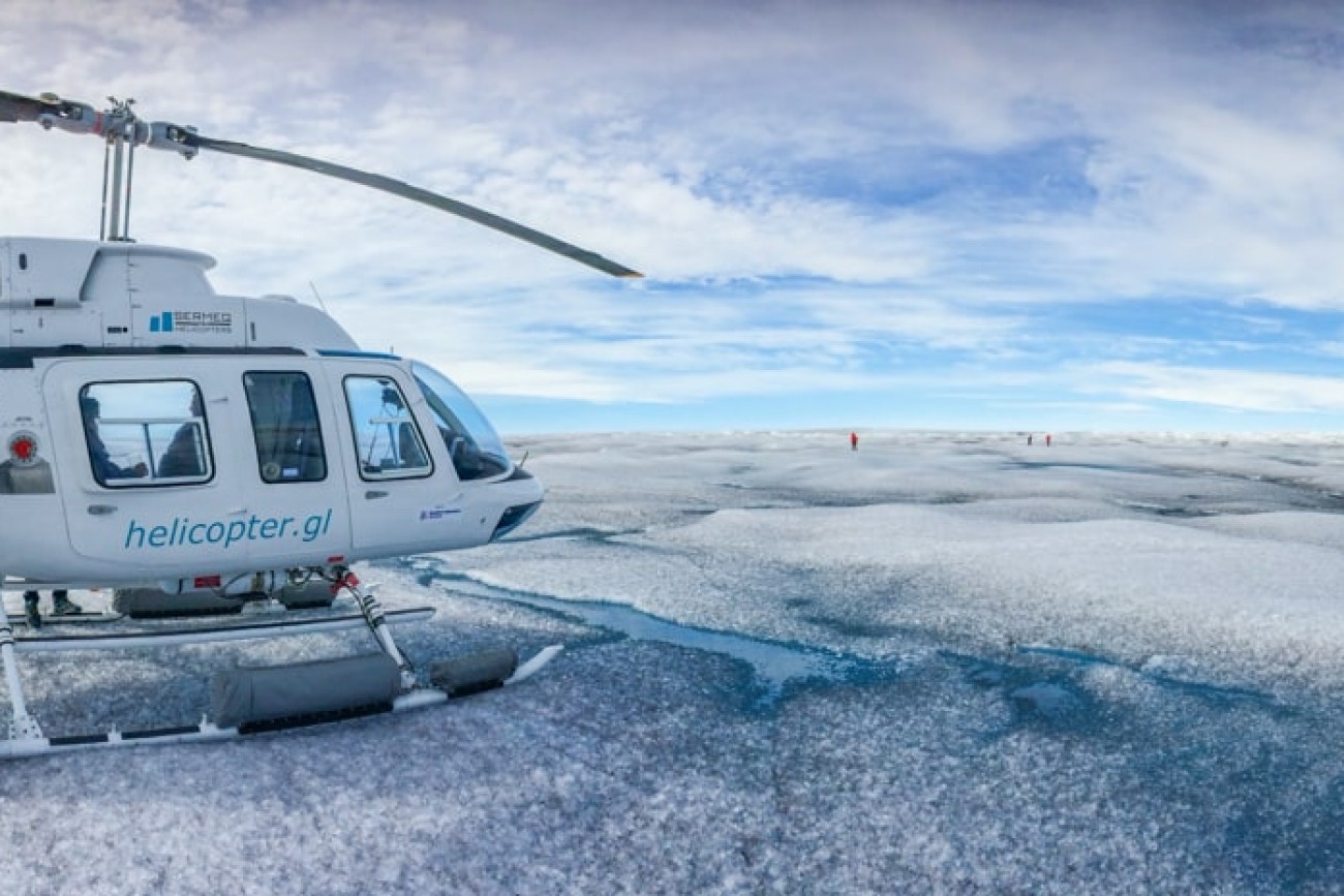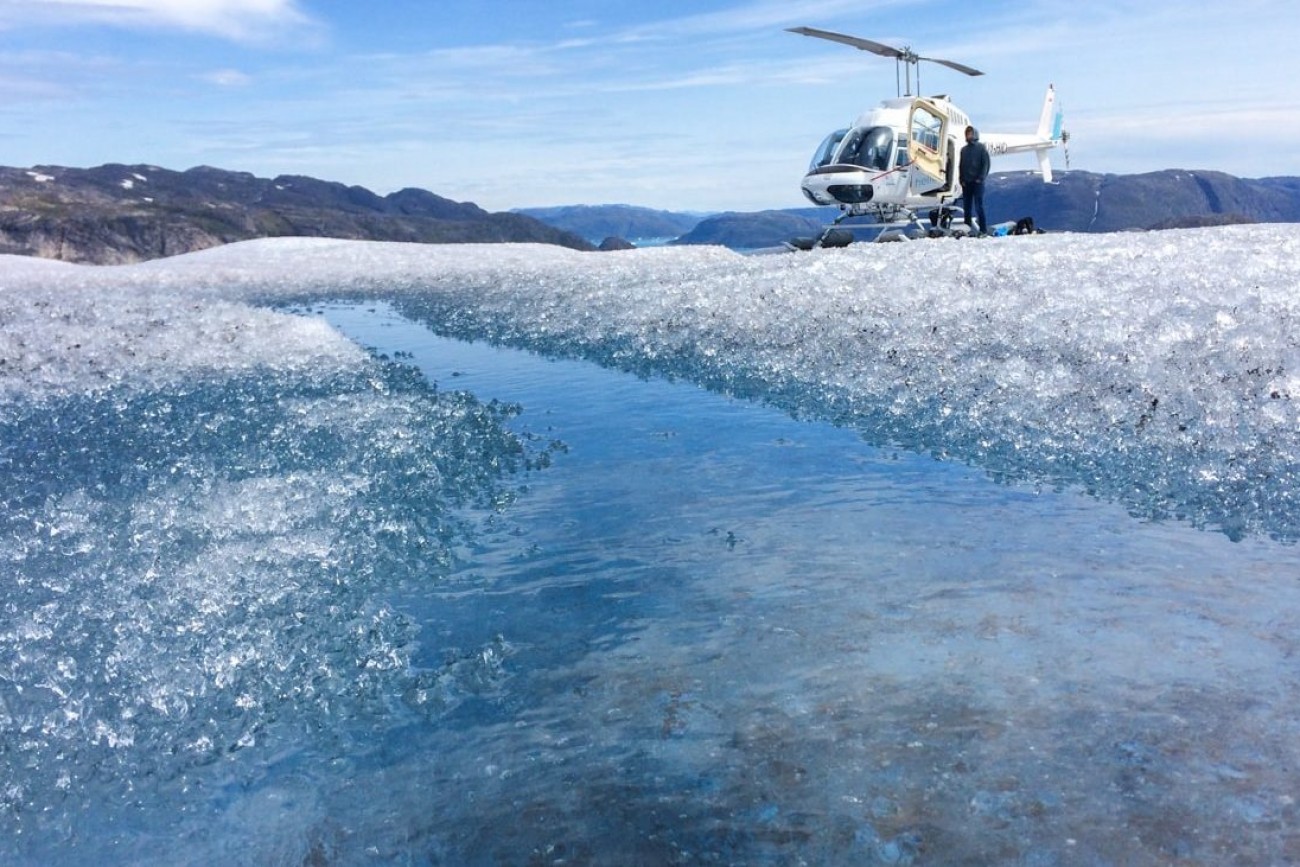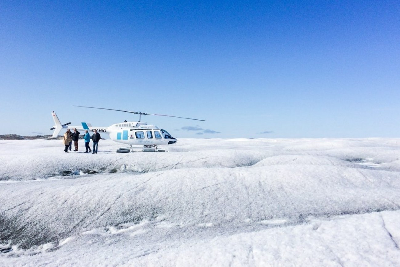 We’ll land directly on the glacier, where you can enjoy walking on the biggest ice cap in the northern hemisphere and have a drink of pristine, ancient water and ice cubes you chip out directly from the glacier.
