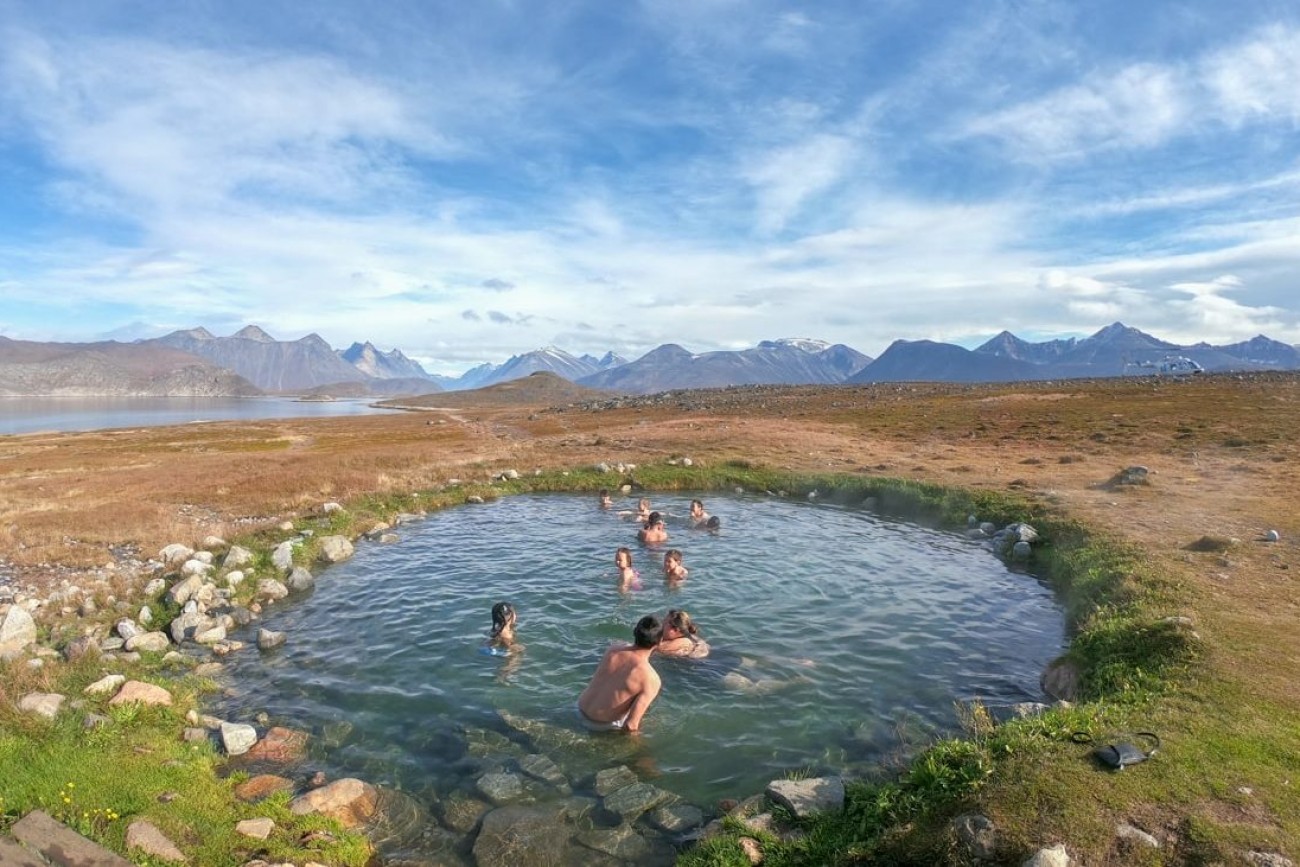 Bring your bathing suit and venture out for the contrasts. The tour contains a trip past towering icebergs, green valleys and farms, and of course the destination Uunartoq hot springs. Available at cozy 38 degrees C all year round, this small group of natural spa out in the open is located on an island in the middle of nowhere with icebergs floating in the background.